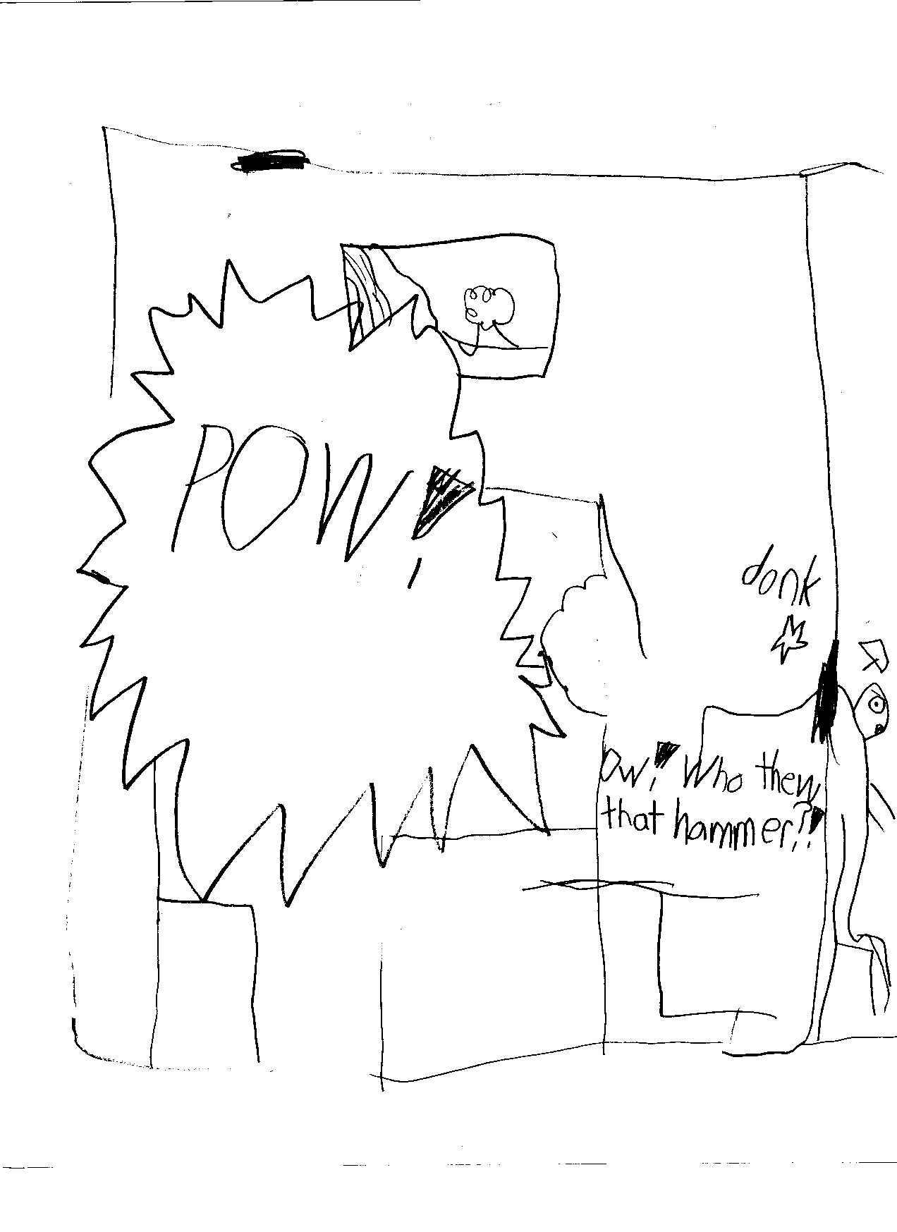 ....the rough landing, as the neighbour grasps the hammer...