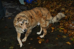 (OK – the photo has ‘washed out’ the colours, but, this is one dog who absolutely LOVED getting his ‘make-up’ on. When he saw the kids get theirs done, he just lined up and wanted the same treatment!)