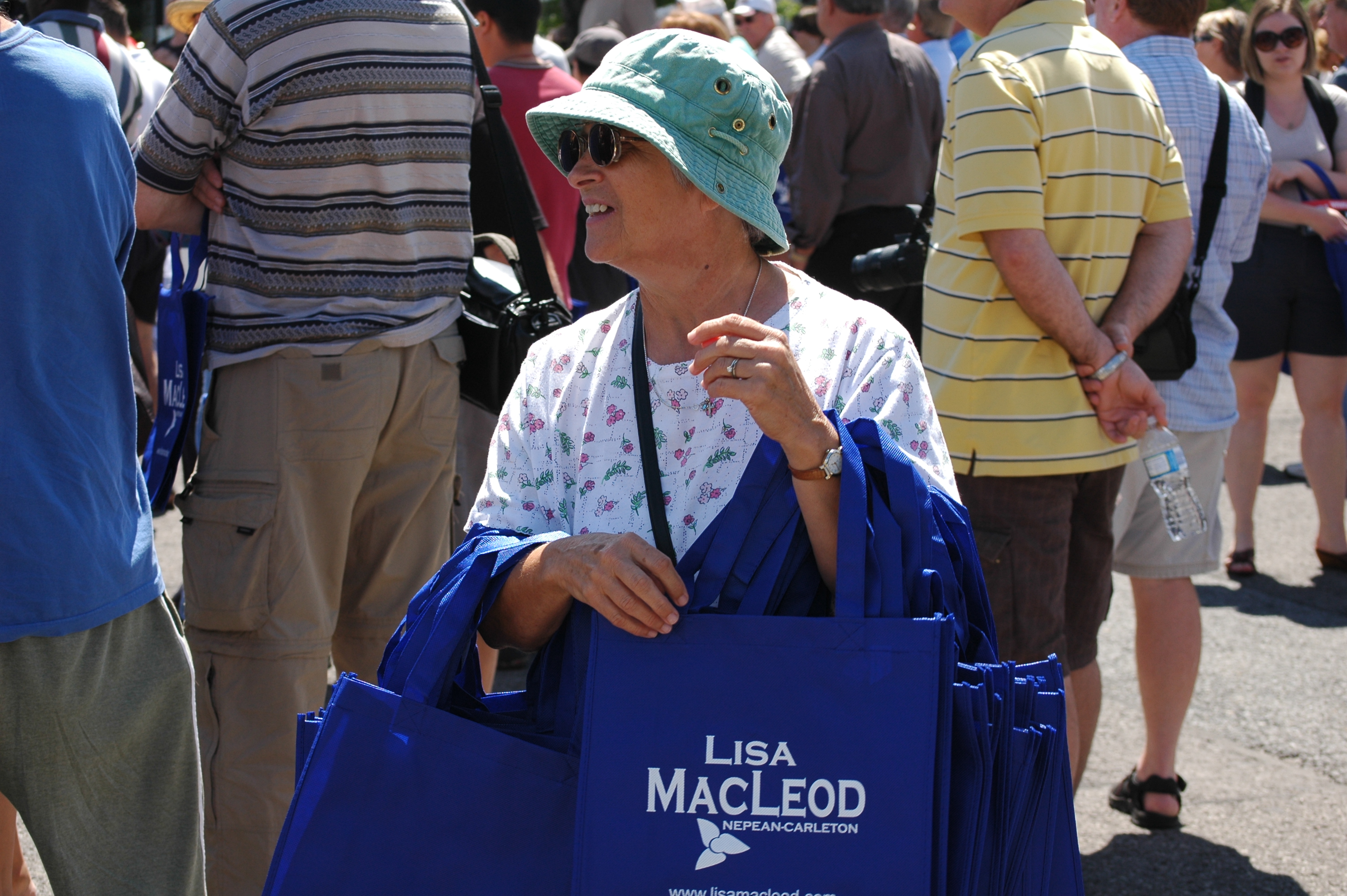 Ms. McLeod turned that to her advantage, because sometimes, opposing illegal taxes only means one opposes illegal taxed (my wording). And, she proved it! She brought a re-usable eco-friendly shopping bag (with her name emblazoned on it) for each and every one there! As she spoke, a wave of volunteers began handing them out!