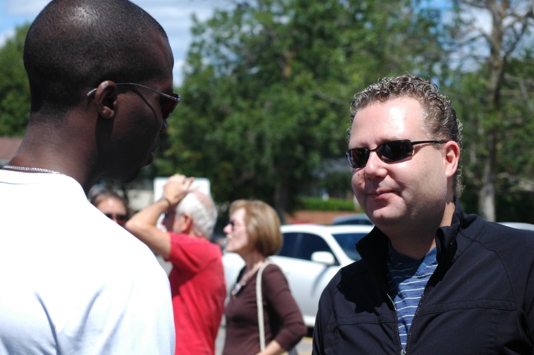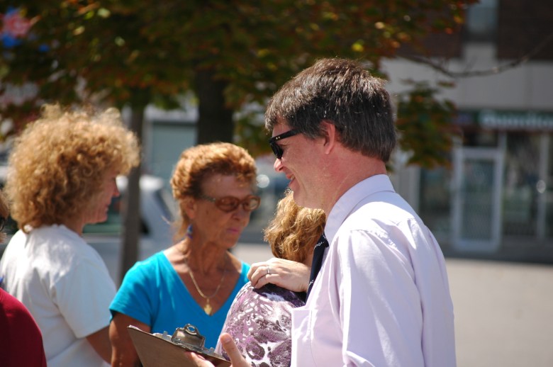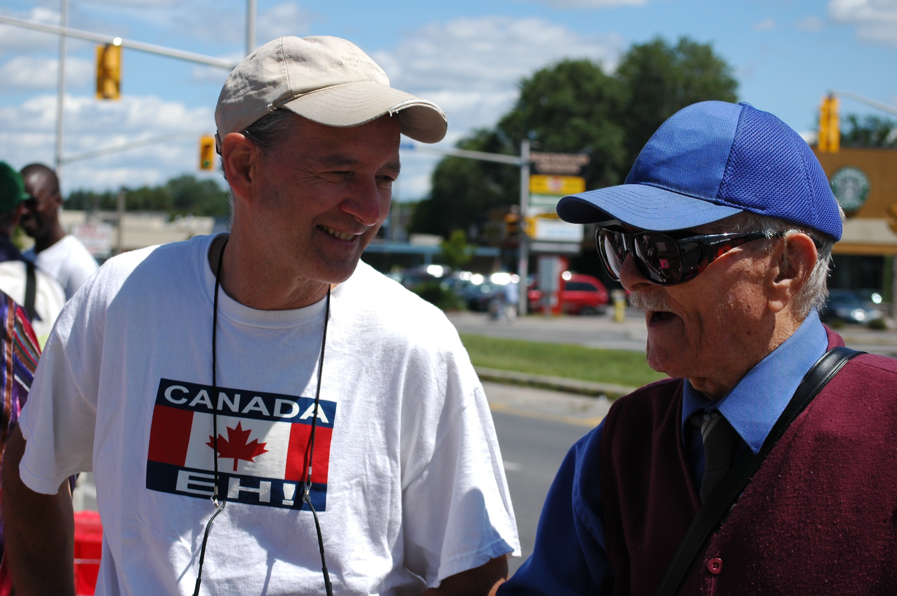 This young man (right) with CFRA’s Rob Snow (left) is Leslie Saintilma, a very pleasant and intelligent guy (at least, that was the impression he left me with from the few minutes we chatted) who is running in Ward 10, Gloucester Southgate.