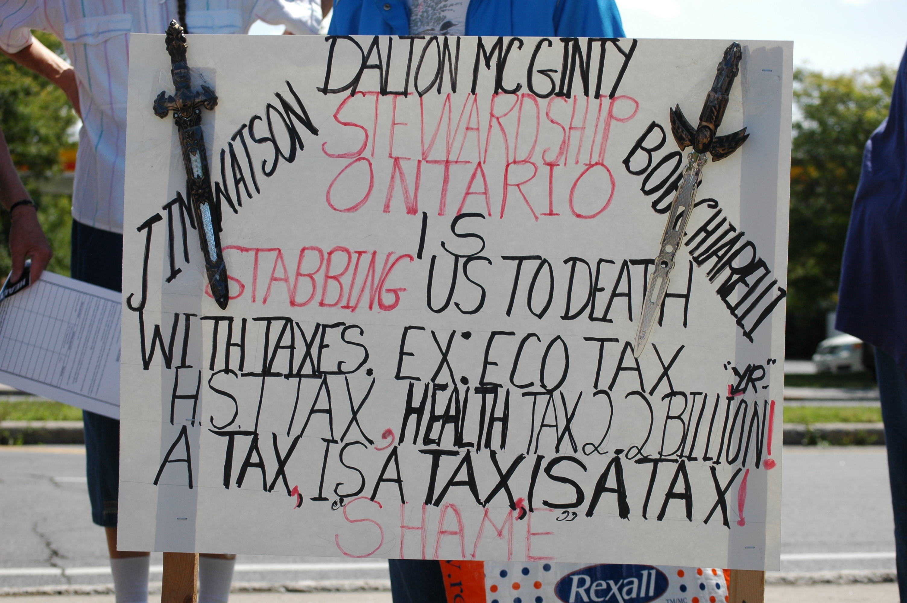 Yesterday, August 7th, there was a protest against Ontario’s illegal eco-taxes. I have posted photos from it here and here. These are some more photos from there, along with a bit more commentary.