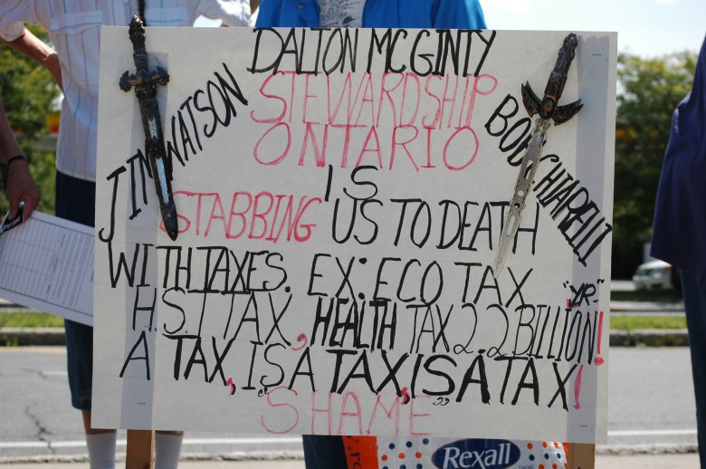 Debbie and Shirley are planning the NEXT protest for August 28th 2010 at Dalton McGuinty’s Ottawa constituency office. If you don’t like being taxed to death – legally and illegally – I’ll see you there!
